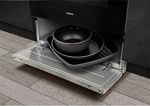 Kuchnie wyposażono w naprawdę spore szuflady, w których możesz przechować patelnie i niższe garnki z pokrywkami.